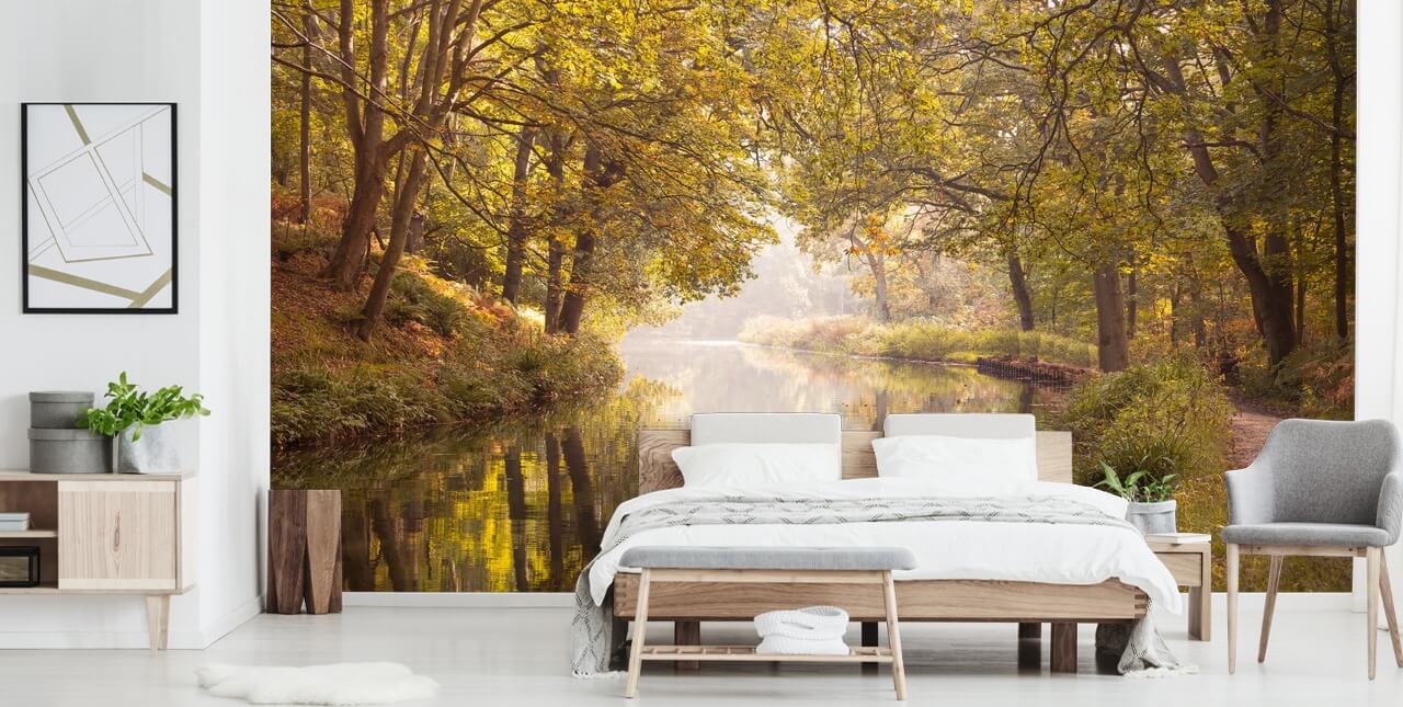 Skapa en lugn atmosfär i ditt hem med denna underbara Canal Reflections tapetväggmålning av Assaf Frank. Denna helt avkopplande skogsmark tapet skulle ge en lugn atmosfär till vilket rum som helst i hemmet.