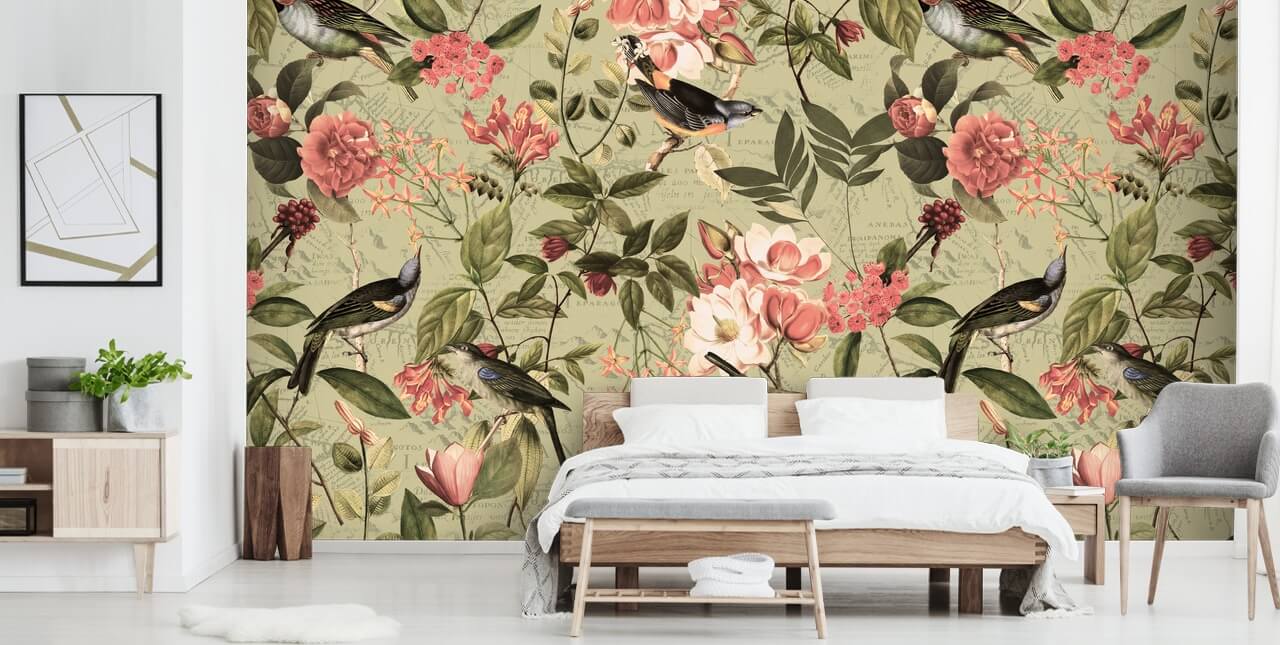 Taskönhet till dina väggar med denna skräddarsydda Exotic Bird Garden tapetmålning. Hämtad från vår Uta Naumann-samling, skulle denna vackra blommiga tapet göra en vacker funktionsvägg i ett romantiskt sovrum. Placera denna fågel och blommor tapeter på väggen bakom sänggaveln på sängen och välj rumstillbehör i dessa nyanser.