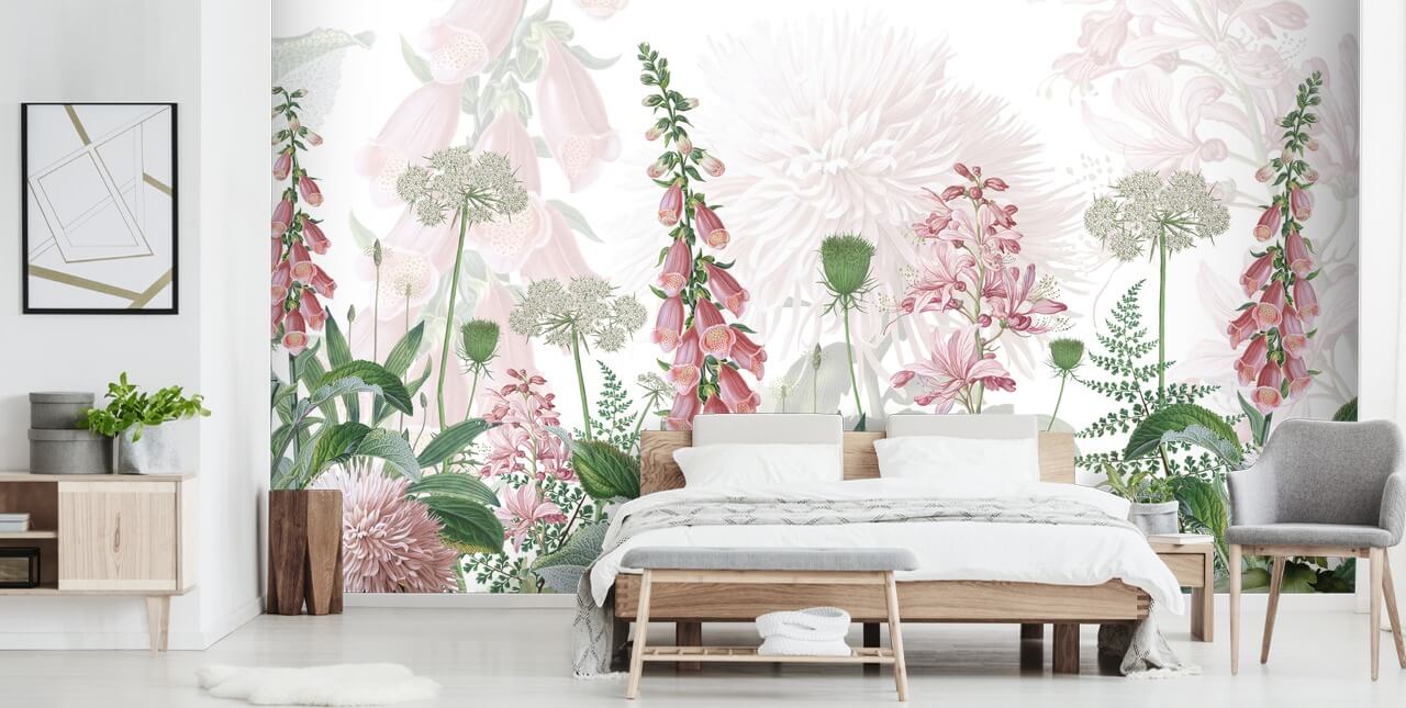 Här på Wallsauce tror vi att denna vackra blommiga tapet skulle göra en fantastisk funktion vägg i ett sovrum med ett land stuga tema. Placera denna underbara rosa tapet bakom sänggaveln på din säng och måla de omgivande väggarna i antingen en benvit eller pastellrosa färg. Vi rekommenderar att du väljer naturligt trä eller vita möbler och föreslår att du har en vas med rosa blommor, falska eller riktiga, på fönsterbrädan för att komplettera de vackert illustrerade blommorna i designen.