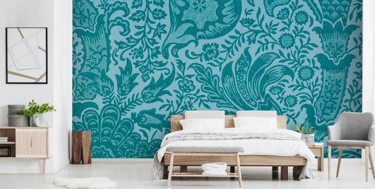 Ta med dig en exotisk känsla i ditt hem med denna vackra indiska mönster tapet från WallSauce.com. En blågrön tapet inspirerad av verk av William Morris, en textildesigner och konstnär, denna paisley tapet är säker på att ge vintage charm och färg till vilket utrymme som helst.