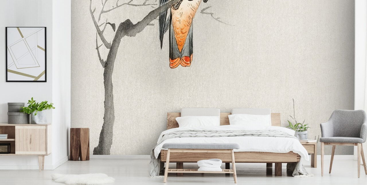 Ge ditt hem en slående vägg med denna skräddarsydda japanska pestfågel på Branch tapet väggmålning.