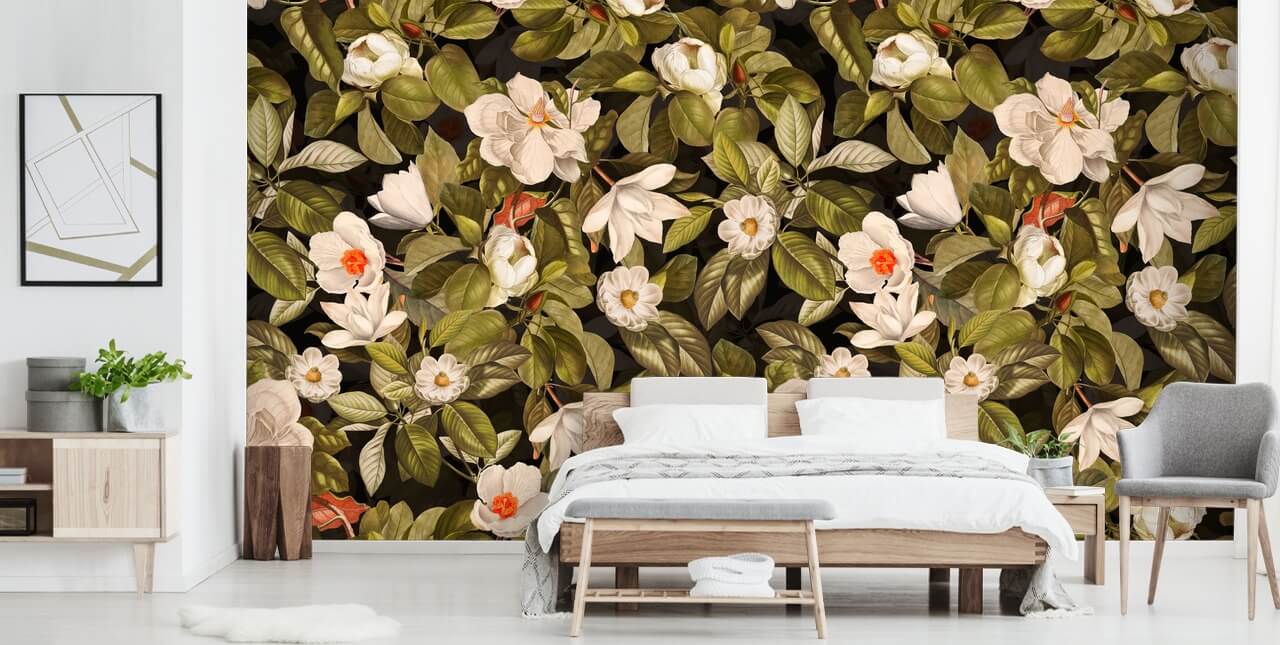Älskar grönt? Handla sedan denna vackra, skräddarsydda Magnolia Garden tapet.