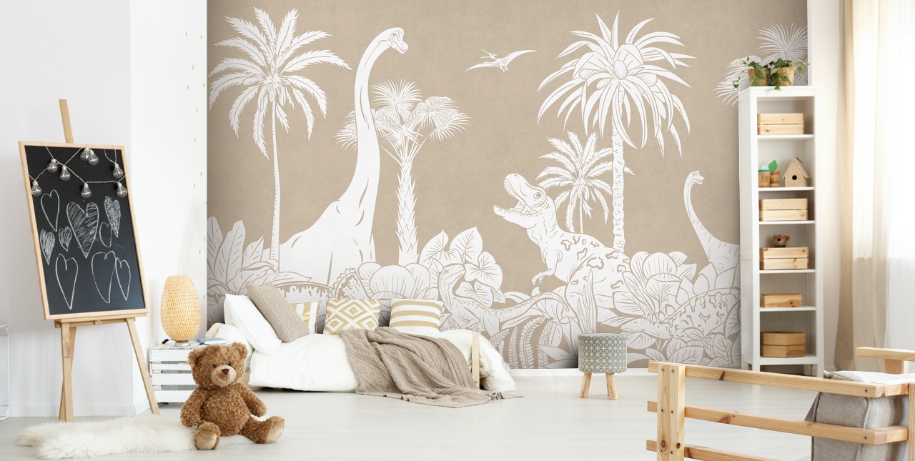 Med en förhistorisk strid mellan en rad utdöda djur, kommer de varma, monokroma tonerna i denna dino tapetväggmålning att komplettera alla inredningsstilar, nya eller befintliga och kan stå ensamma som en funktion eller passa perfekt med din inredning. Återigen ger våra matta material den perfekta finishen till denna dinosaurie-väggmålning och gör att den kan appliceras i det traditionella klistra väggvalet vi erbjuder eller, för det självhäftande alternativet, vårt skal-och-stick-alternativ, perfekt för dem som rör sig med trenderna eller i hyrda hem.