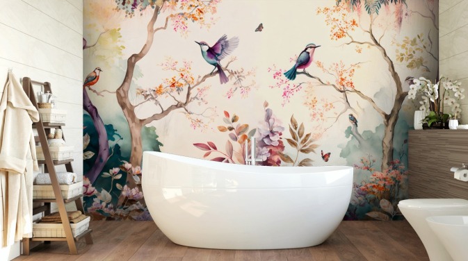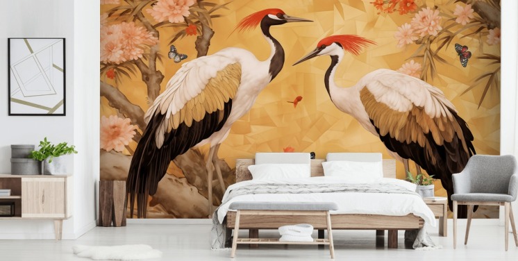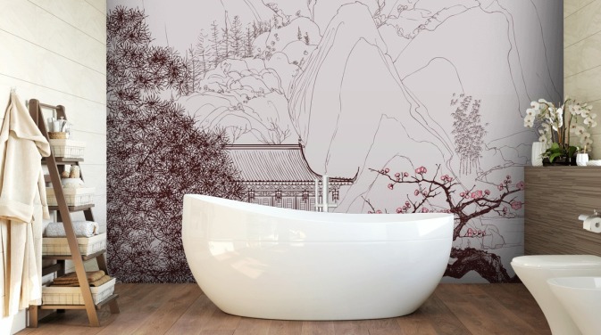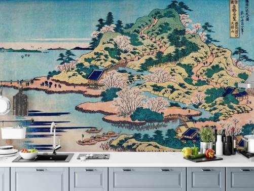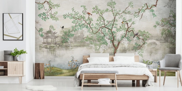 Alla ombord för vårt imponerande utbud av orientaliska tapeter väggmålningar. Beundra körsbärsträdet blommar, sträckande broar och eleganta fåglar när de omfamnar sin omgivning. Se vattenfall duscha ner när de plaskar mot klipporna, stirrar upp på lockande tak i de stora japanska byggnaderna eller beundra Fujis bergsplats mot den vackra landskapsbakgrunden.