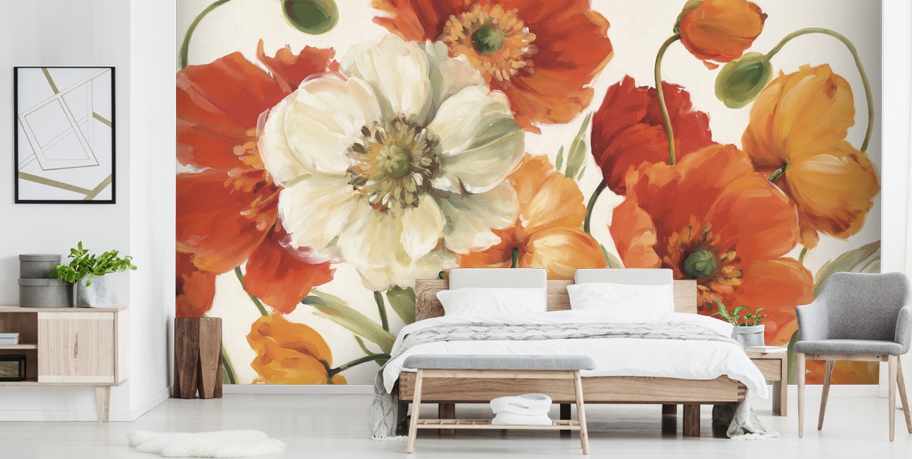 Förvandla ditt rum med naturens skönhet med vår Poppies Melody väggmålning av Lisa Audit.