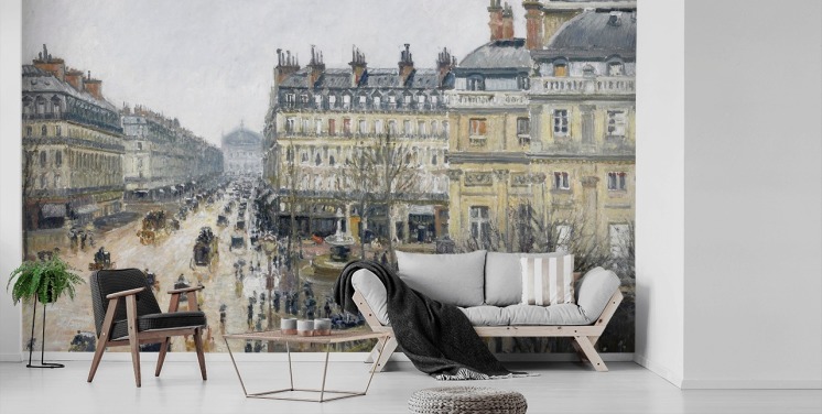 konstväggmålning som heter Place du Theatre Francais av Camille Pissarro