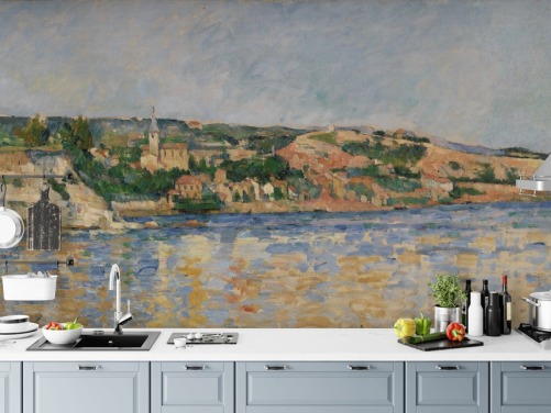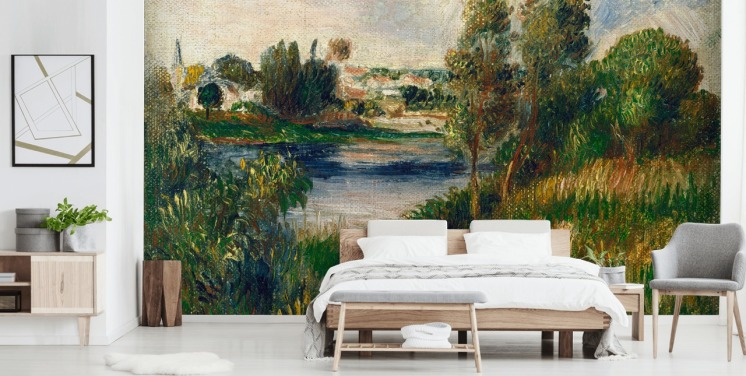 konsttapet väggmålning kallad Seinen på Vetheuil av Claude Monet