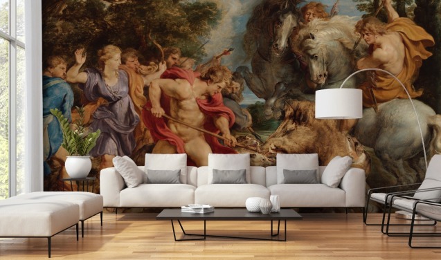 konsttapet väggmålning som heter Minerva skyddar Pax från Mars av Peter Paul Rubens för hem och företag