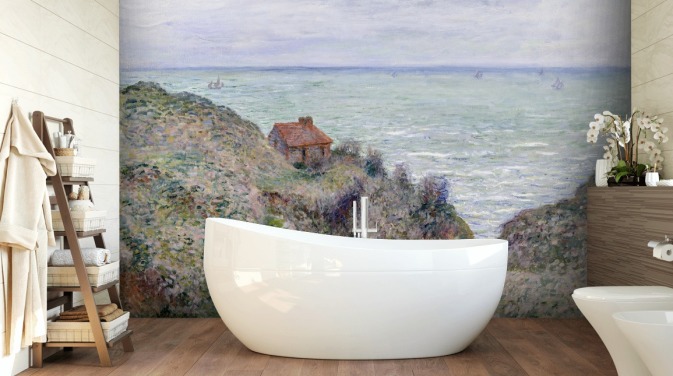konstväggmålning kallad Cabin of the Customs Watch av Claude Monet
