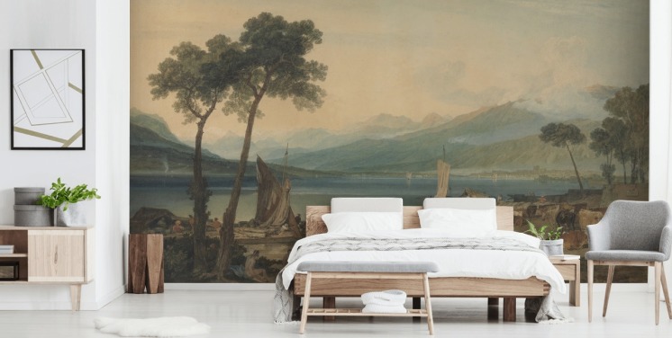 konsttapet väggmålning kallad Genèvesjön och Mont Blanc av J.M.W. Turner för sovrum och lounger