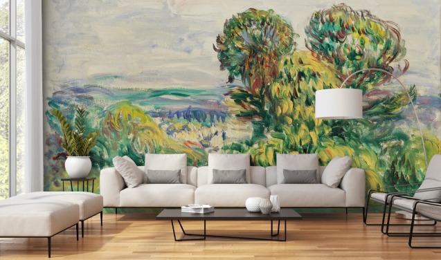 konsttapet väggmålning som heter The Bellevue Plain av Paul Cezanne för sovrum och lounger