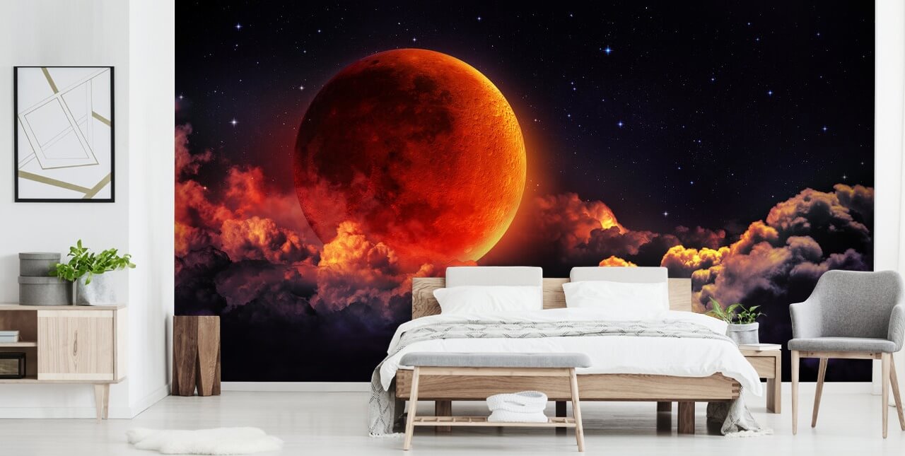 Få denna fantastiska Fiery Moon tapet i ditt hem. Skräddarsydd för att passa din vägg till perfektion.