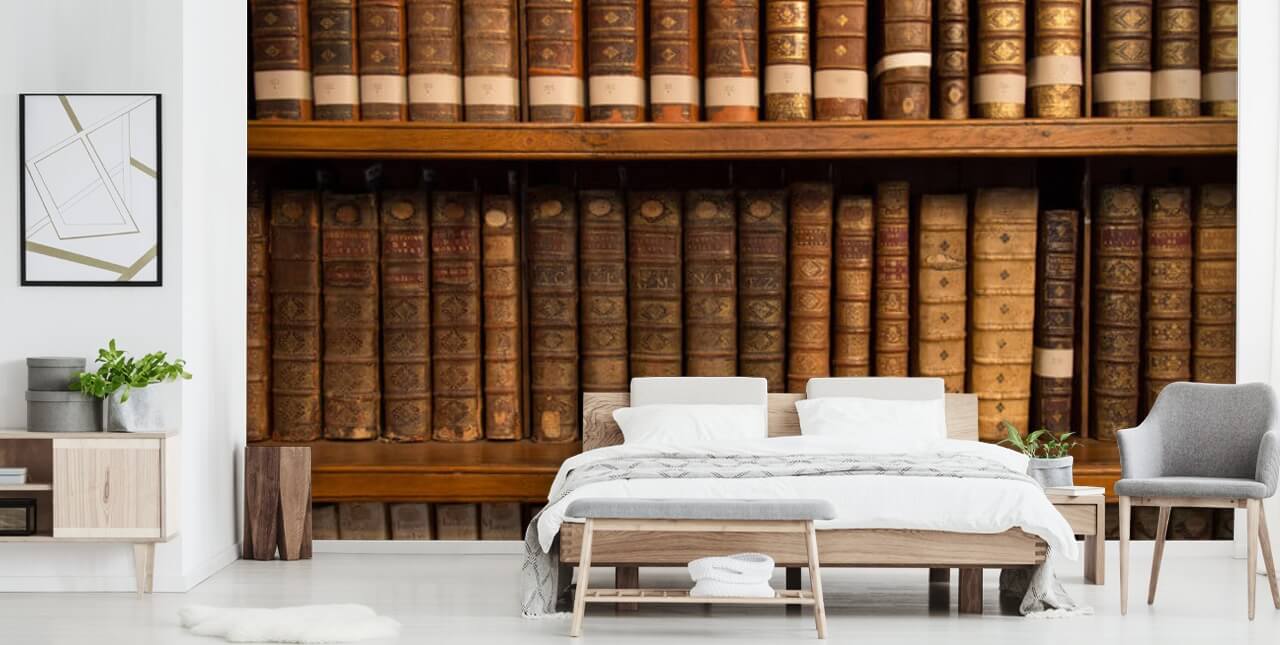 Skapa ett mysigt bibliotek med denna skräddarsydda antikvolymer tapeter.