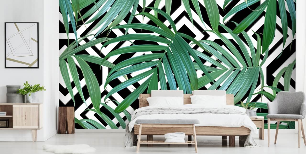 Njutav en touch av tropikerna i ditt hem med denna skräddarsydda bananbladsmönster tapet från Wallsauce.com. Perfekt för ett elegant badrum, installera denna palmbladstapet på en vägg ihop med svartvita tillbehör.