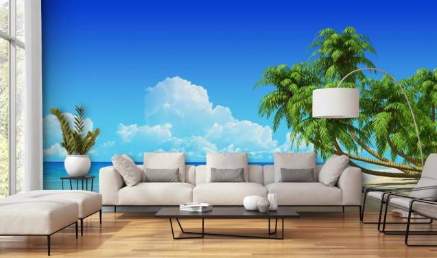 vit anpassningsbar strand tapet som heter Tranquil Beach View av Assaf Frank