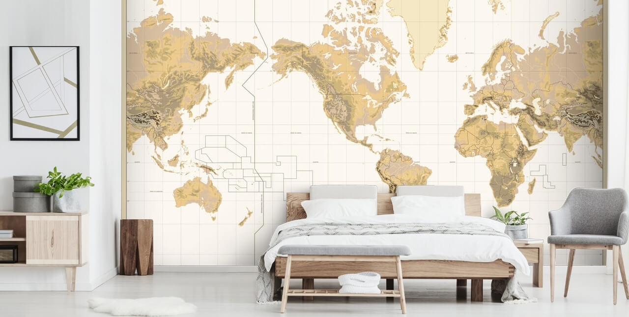 Om du skulle älska en världskarta väggmålning men inte vill att ditt hus ska se ut som ett geografi klassrum, så är denna Beige World Map tapet perfekt! Med vackra subtila nyanser av bruna, krämer och beiges kommer denna kartväggmålning att vara ett smakfullt tillskott till någons hem.