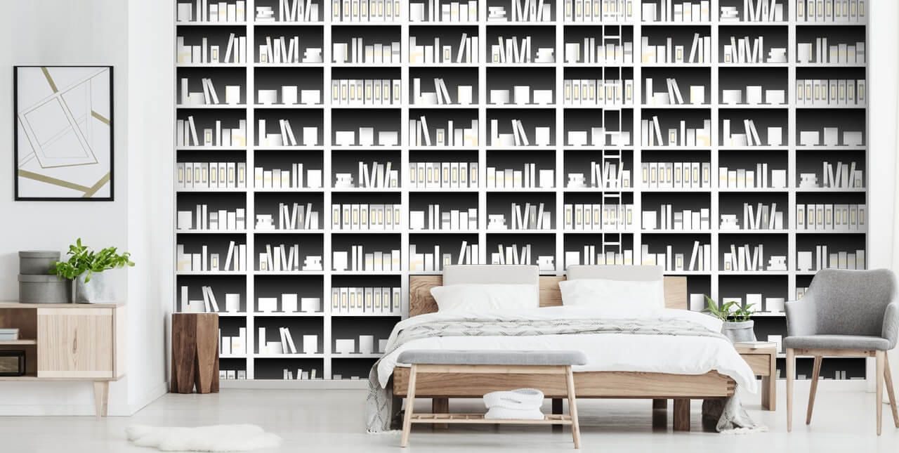 Förvandla ditt hem med denna skräddarsydda böcker och stegar tapeter.