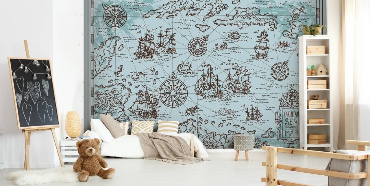Installera denna Karibiska havet Karta tapet väggmålning i ditt hem.