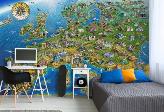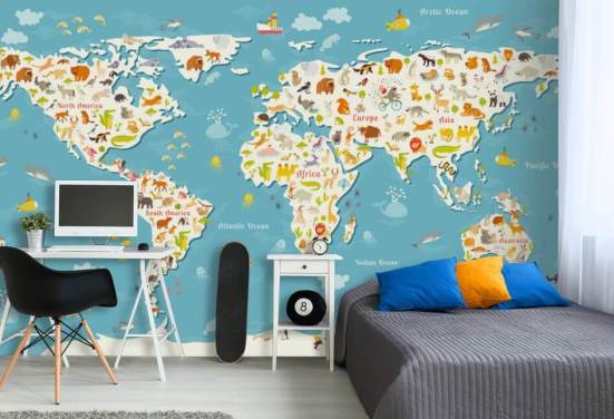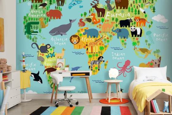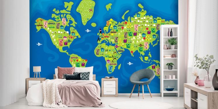 Gör utbildningen rolig med en levande kartväggmålning i vår kollektion utvald exklusivt för barn. Från tecknade gatukartor till stads-, stads- och landsspecifika kartor, installera en mätt kartväggmålning och visa dem hur roligt lärande är!