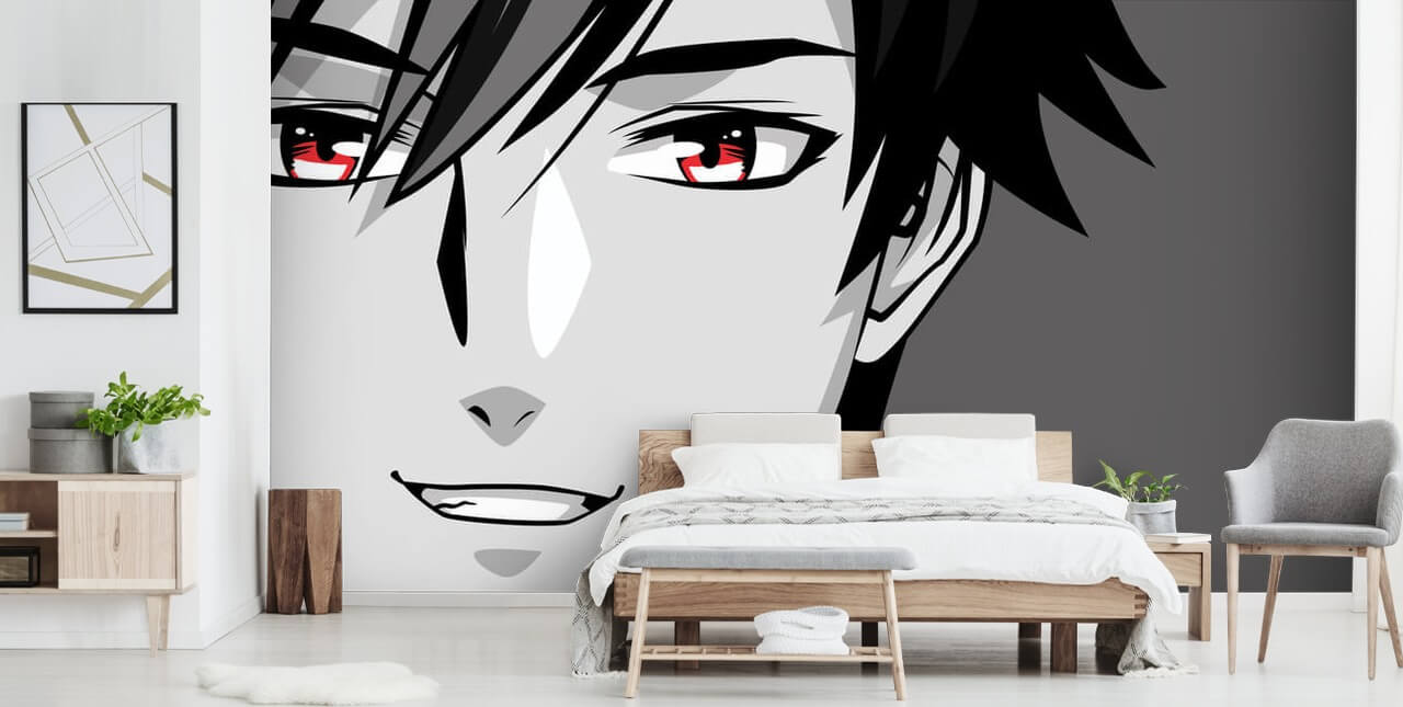 Älskar du anime? Då kommer du att ÄLSKA denna skräddarsydda svartvit Anime väggmålning från WallSauce.com!