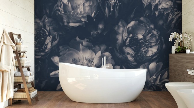 Svart och vitt mörk blommig tapet