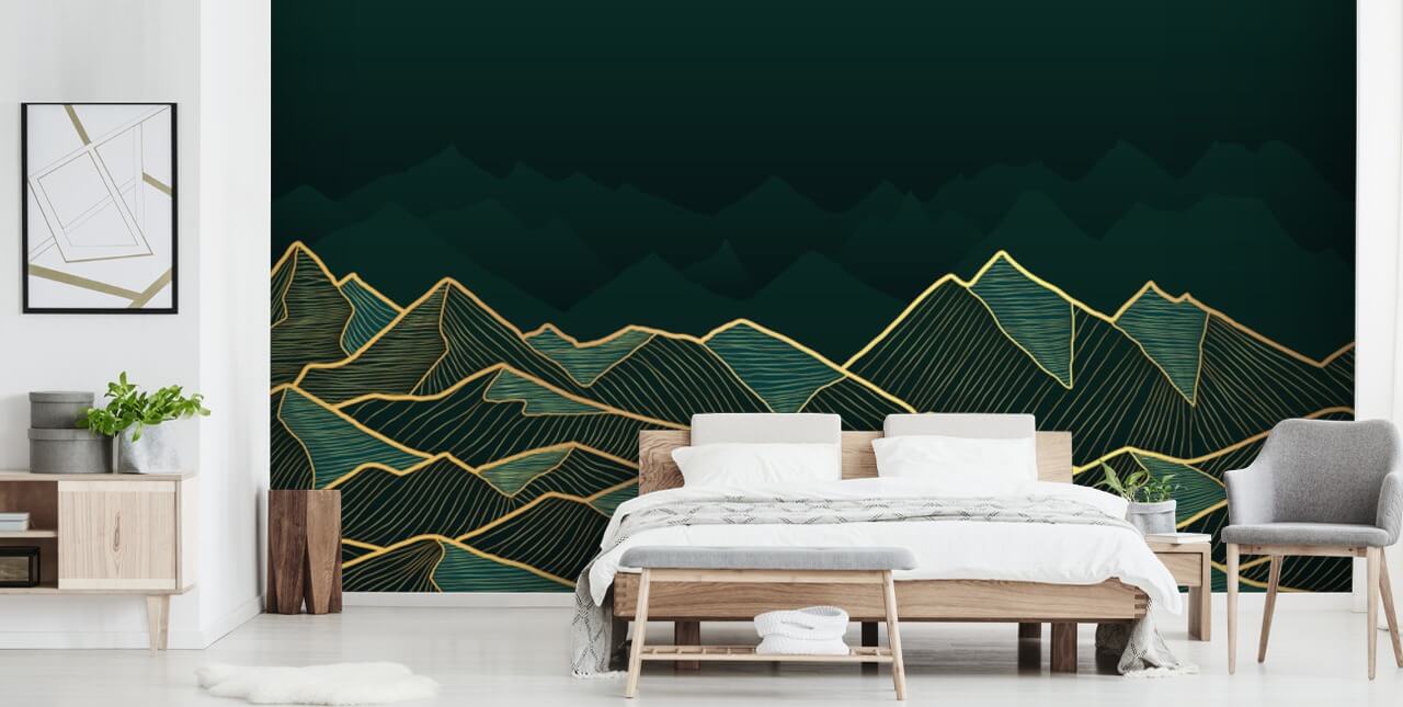 Om du vill göra en wow-faktor i ditt hem, välj sedan denna underbara Emerald Peaks väggmålning. Perfekt för en elegant lounge, rekommenderar vi att du målar väggarna med en blek nyans av smaragdgrönt eller guld, om du känner dig dekadent! Välj en grön soffa för en pop av färg och ha mässande guldinredning i hela världen som en guldlampa, vägg lampetter, handtag och mycket mer!