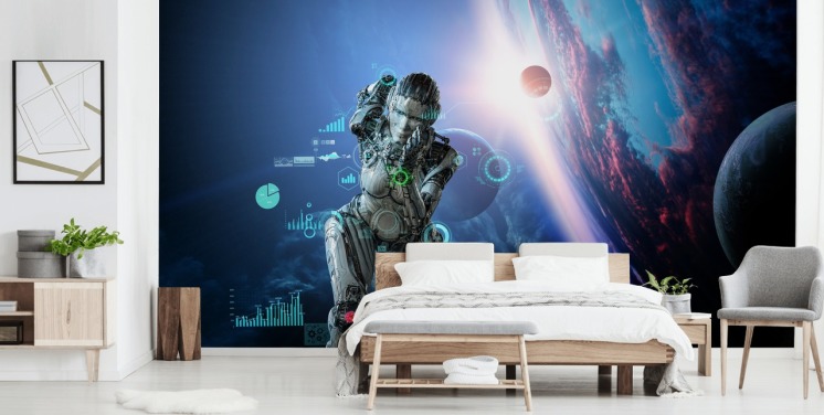 cyberwoman kör upp steg i rymden tapeter