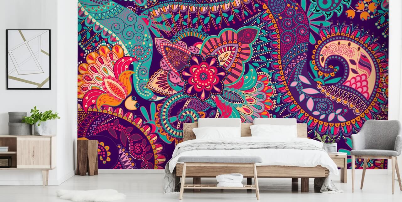 Vi tror att denna väggmålning i paisley skulle se fantastisk ut i ett brett utbud av rum, till exempel ett sovrum, badrum och mycket mer! Varför inte installera den här färgglada mönstertapeten på väggen bakom sängen?