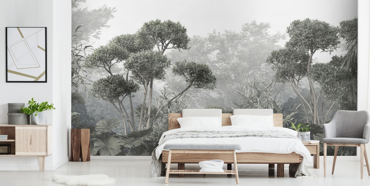Hoppa ombord på djungeltrenden genom att installera en underbar Jungle Tree Tops väggmålning från Wallsauce. Den är skräddarsydd efter dina väggstorlekar.