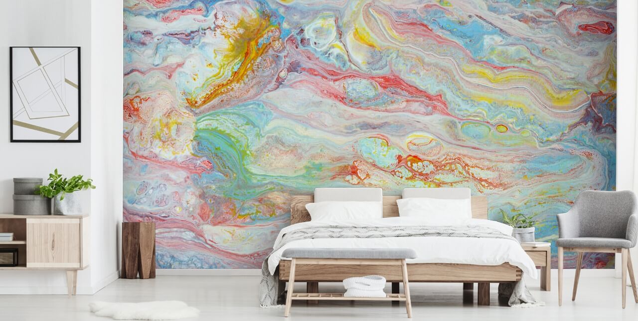 Stänk lite färg i ditt liv med denna skräddarsydda och lättinstallerade Multicolor Marble tapetmålning.