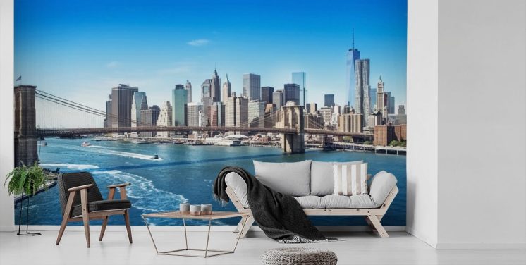 ljus new york city tapetväggmålning som heter New York Brooklyn Bridge Skyline