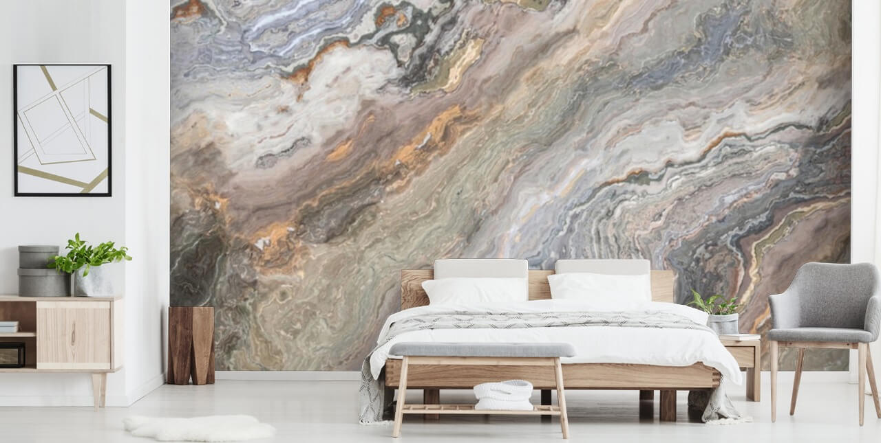 Få utseendet på marmor utan att bryta banken med vår snygga och sofistikerade tapetmålning Onyx Sand Marble.