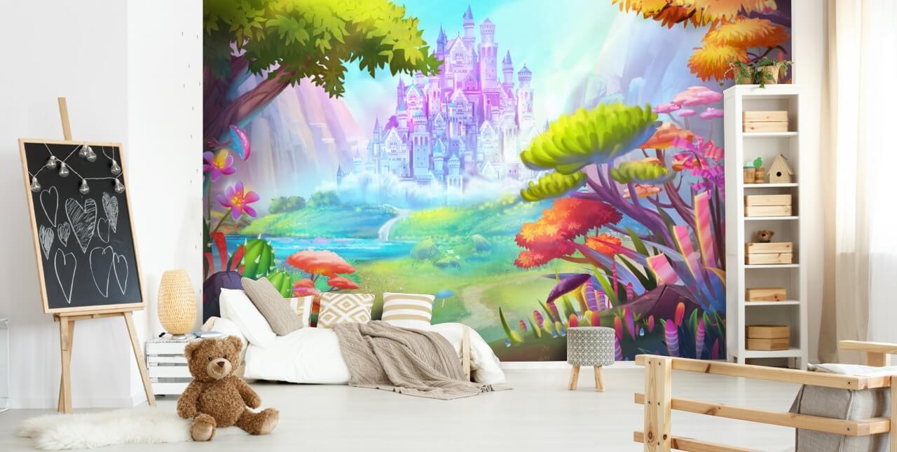 Bli förvånad över färgen och skönheten i denna strålande Palace of Wonders tapet. Vilken förtrollande prinsessa palats tapeter för ditt barns sovrum! Tänk dig de fantastiska drömmar de kommer att ha med denna saga väggmålning bakom deras sänggavel!