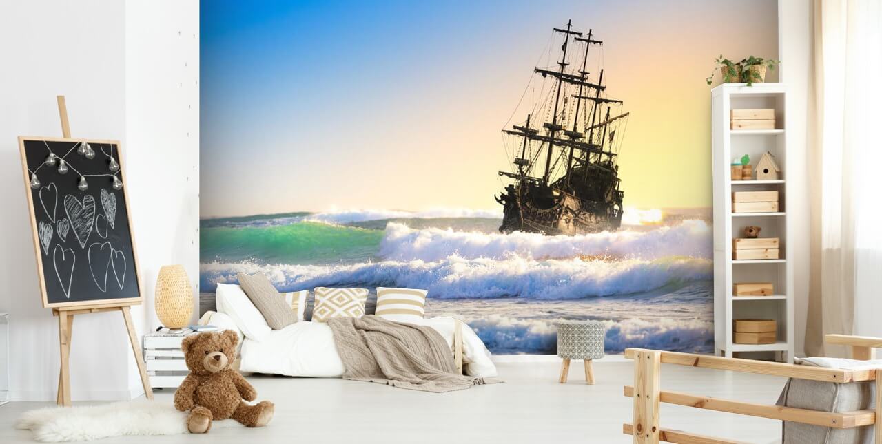 Känn dig som en pirat på ett äventyr med denna skräddarsydda Pirate Ship Waves tapet väggmålning.