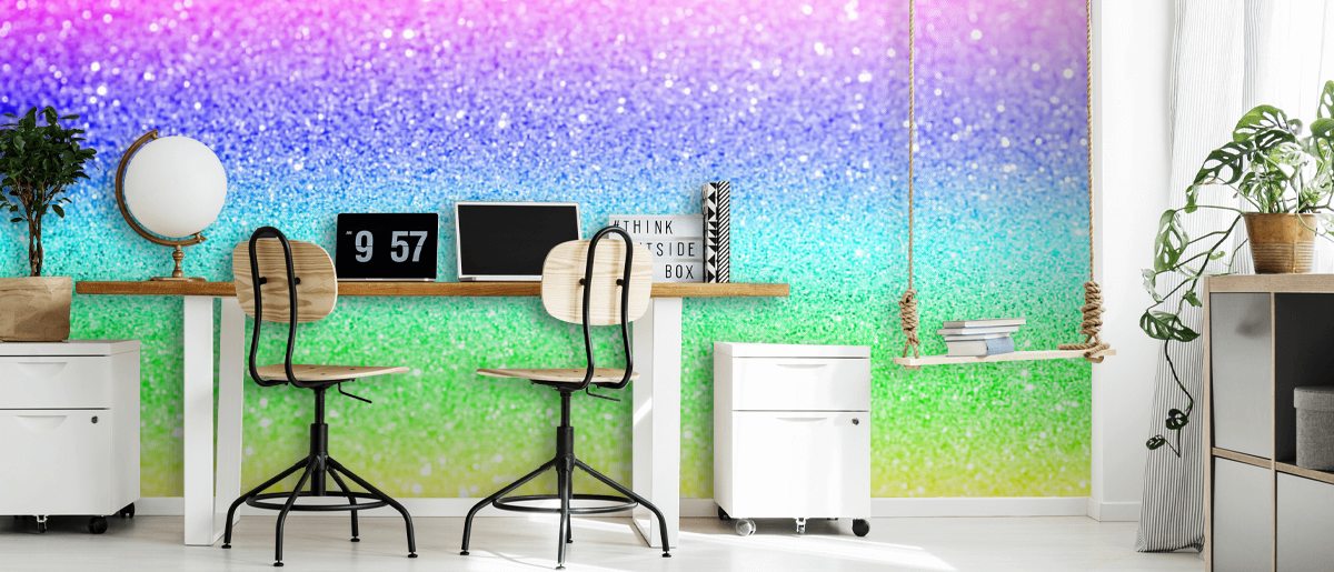 Ta med regnbågen in i ditt hem med vår skräddarsydda Rainbow and Pastel Glitter tapetmålning.