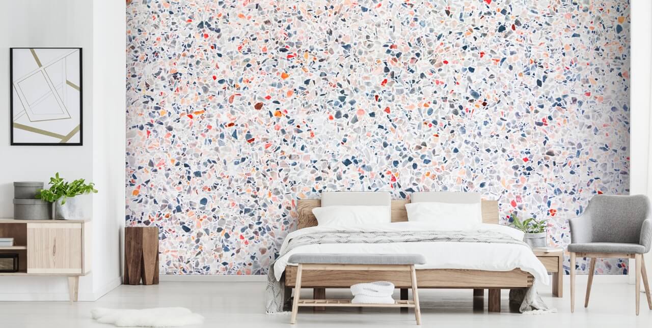 Denna fantastiska terrazzo-väggmålning finns i en rad av tre bakgrundsbilder. Klassisk premie, klistra in väggen, eller texturerat skal och stick. Beställning kan inte vara enklare. Allt du behöver göra är att ringa oss eller fylla i formuläret på den här sidan!