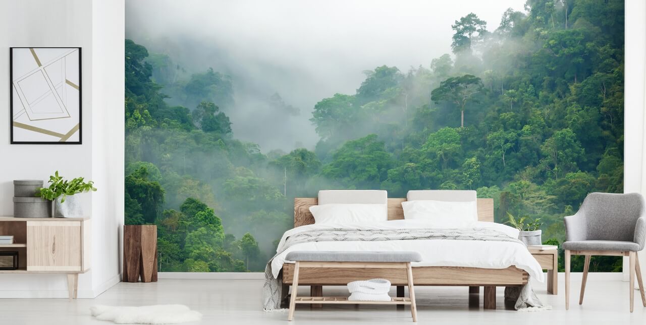 Beställ denna Rainforest Morning Fog tapet väggmålning. Skräddarsydda för att passa din vägg och göra ditt hem snyggt!