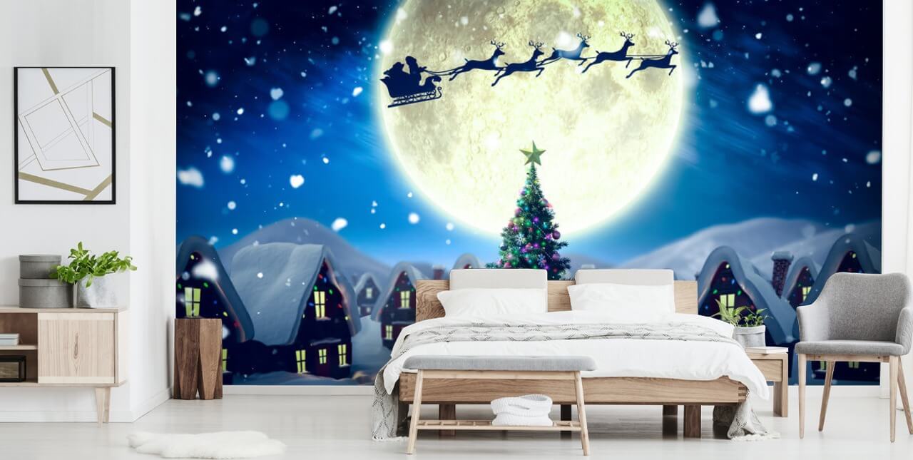 Ta lite festlig jubel på dina väggar med denna Santa Delivering Presents Wallpaper.