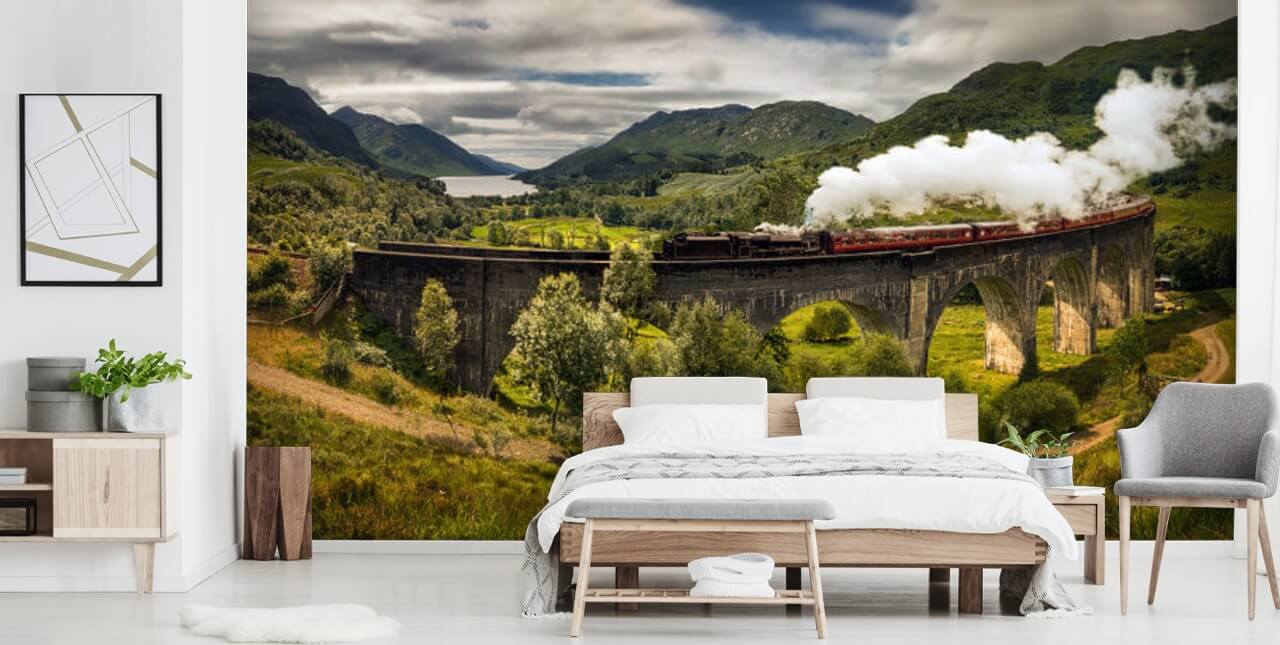 Om du är ett stort fans av tåg, ta en titt på denna häpnadsväckande Skottland Railway tapeter väggmålning från WallSauce.com! Påminner det dig inte om en berömd ung trollkarls resa till skolan också?