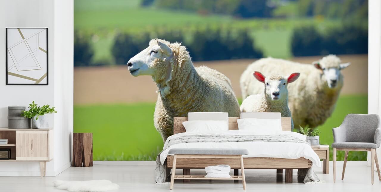 Känn den friska luften i naturen med denna skräddarsydda väggmålning Trio of Sheep.