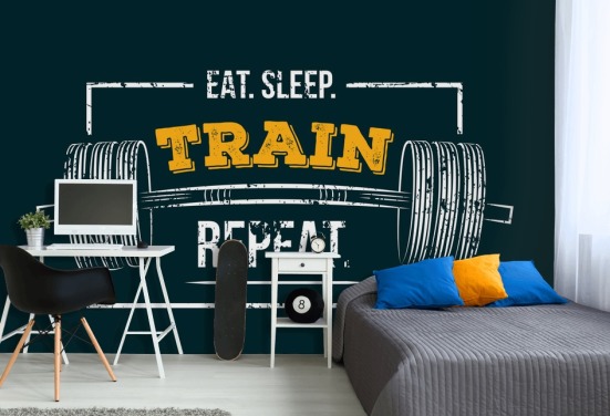 röd och blå rugby väggmålning kallad Rugby Sprint för tonåringens sovrum och gym