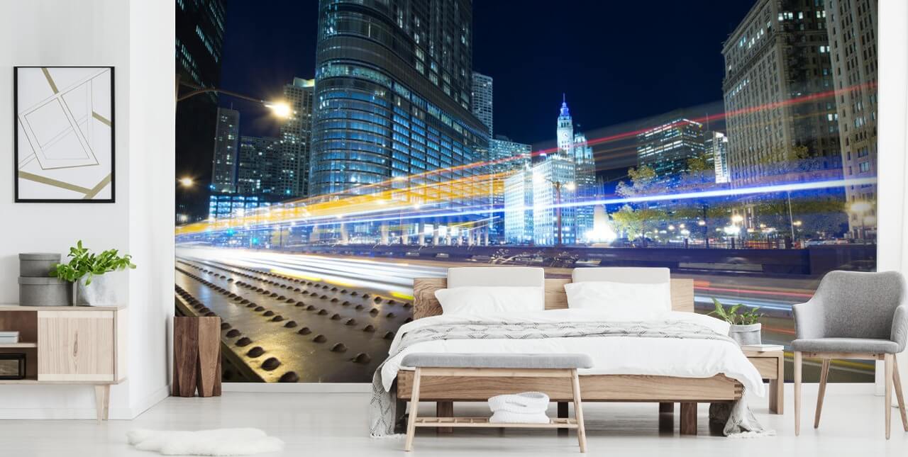 Fantastisk trafik genom Chicago på Night väggmålning från Wallsauce. Skräddarsydda för att passa väggen.