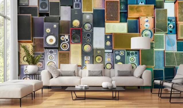 svartvit anpassningsbar högtalare tapet kallad Music Speakers Wall Monochrome för sovrum