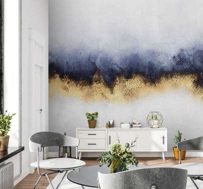 ljusblå och guld anpassningsbar marmor tapetväggmålning kallad Dreamy Blue Watercolour för sovrum, kök eller badrum