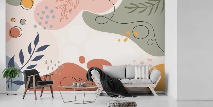 färgglad botanisk väggmålning