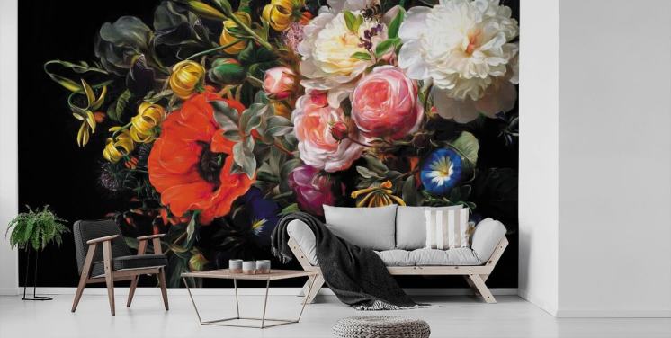 stor blommig väggmålning