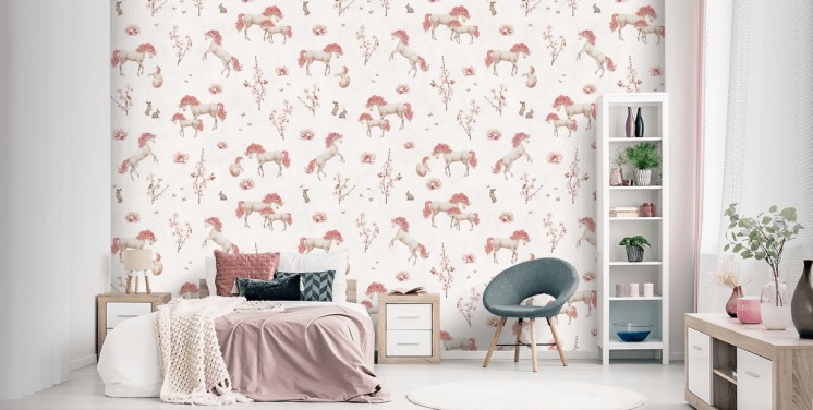Enhörningar, regnbågar, hästar, förtrollande skogar, abstrakta berg, popkonst, färgglada mönster - vi har en enorm samling väggmålningar som är perfekta för en flickas sovrum. Oavsett om de älskar saker vackra i rosa eller mörkgrönt och mystiskt, kommer de säkert att hitta något de älskar i vårt sortiment av tapeter för flickors sovrum.