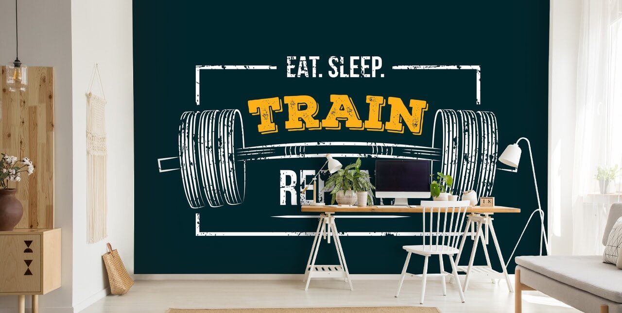 If you are a gym-goer and love nothing more than feeling good after a workout, then this Eat Sleep Train Repeat wallpaper mural is just for you!