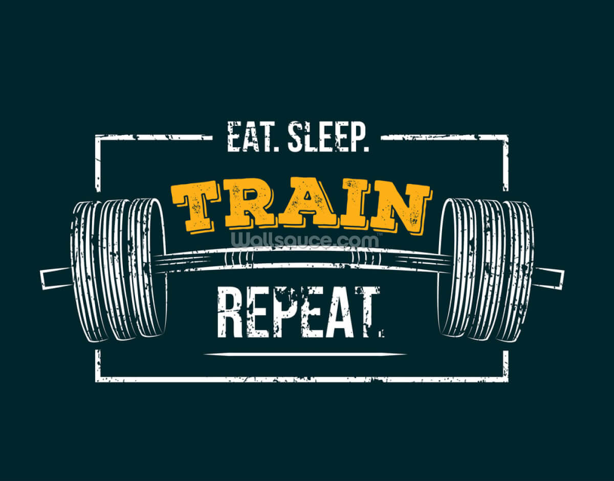 Install this made to measure Eat Sleep Train Repeat wallpaper mural from Wallsauce.com.