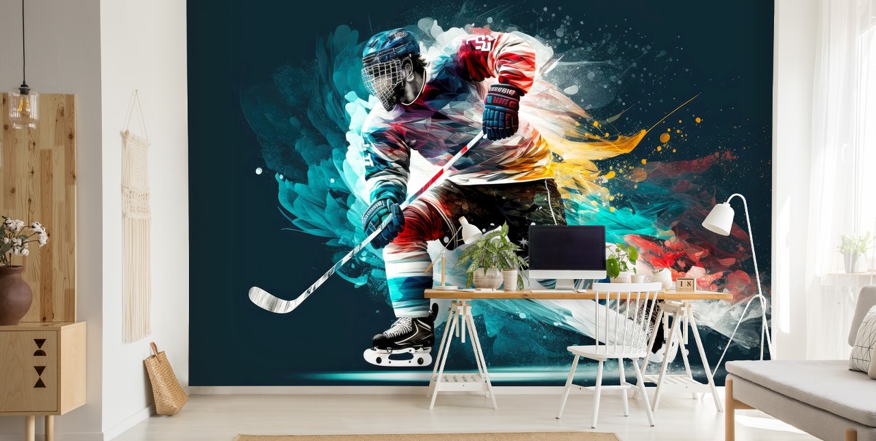 Show your love of the sport with this eye-catching and dynamic Hockey Player wallpaper mural at Wallsauce.